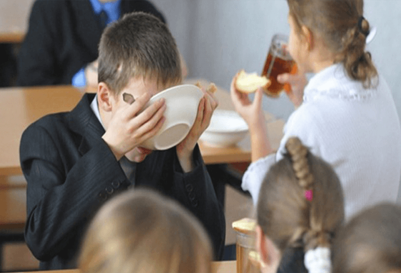 - Нужно есть, сидя за столами рядом с другими учениками.