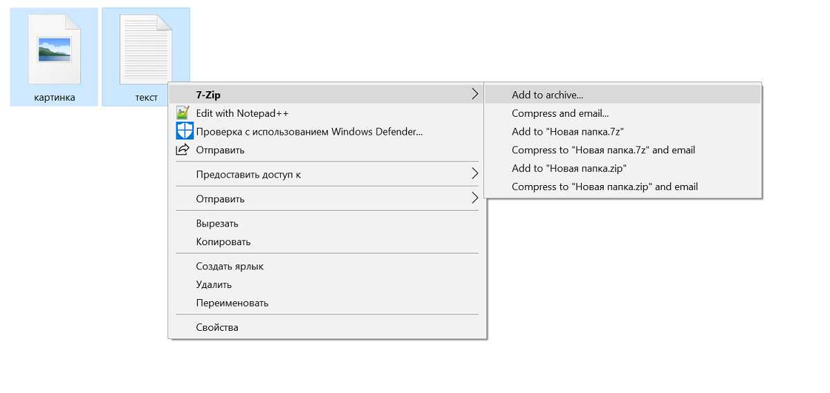 Чтобы заархивировать несколько файлов и папок в ZIP-файл, откройте проводник и выполните следующие действия: