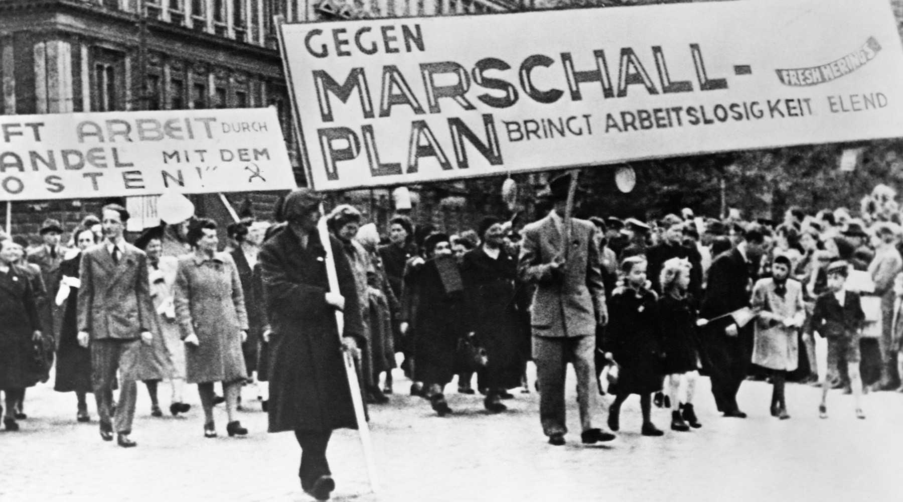 Обращаясь к конгрессу США в марте 1947 года, президент Гарри Трумэн открыто заявил, что распространению коммунистических идей в Европе необходимо противодействовать. А в июне того же года госсекретарь США Джордж Маршалл, выступая в Гарвардском университете, объявил о «наступающем на Европу призраке голода» и потребности Старого Света в американских продуктах, а также о том, что у Америки на этот счёт есть специальный план.