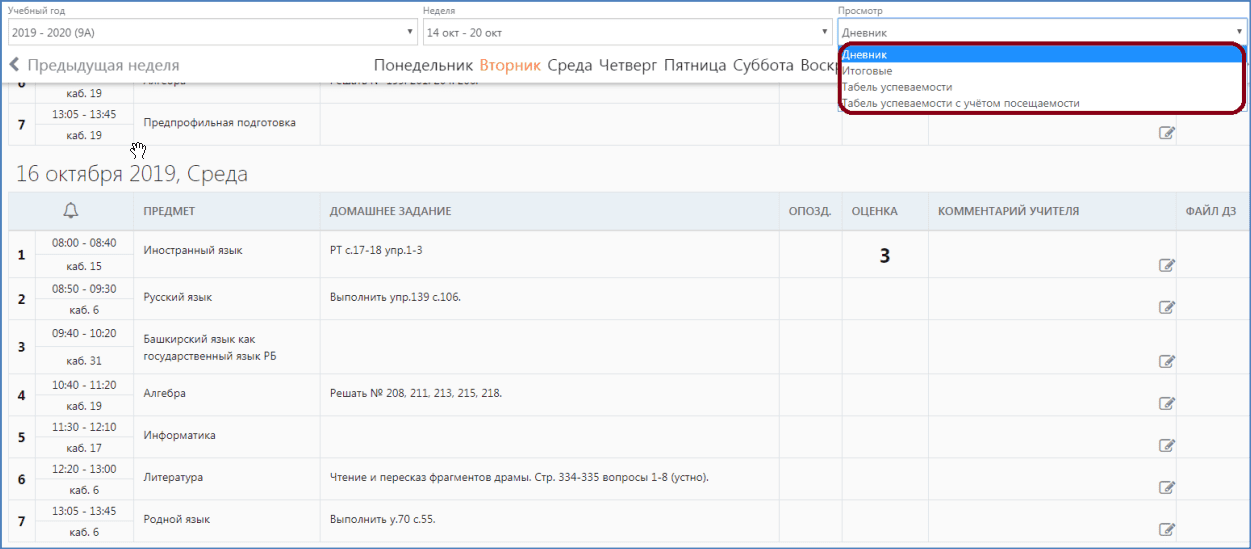 - просматривать домашние задания;