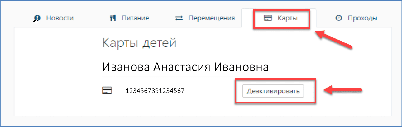 Если карта школьника утеряна, ее нужно заблокировать в личном кабинете. Для этого нужно нажать кнопку «Деактивировать». Если нет технической возможности зайти в систему, нужно связаться с классным руководителем, администратором школы или позвонить на горячую линию АИС «Образование» по номеру 8-800-100-81-80.