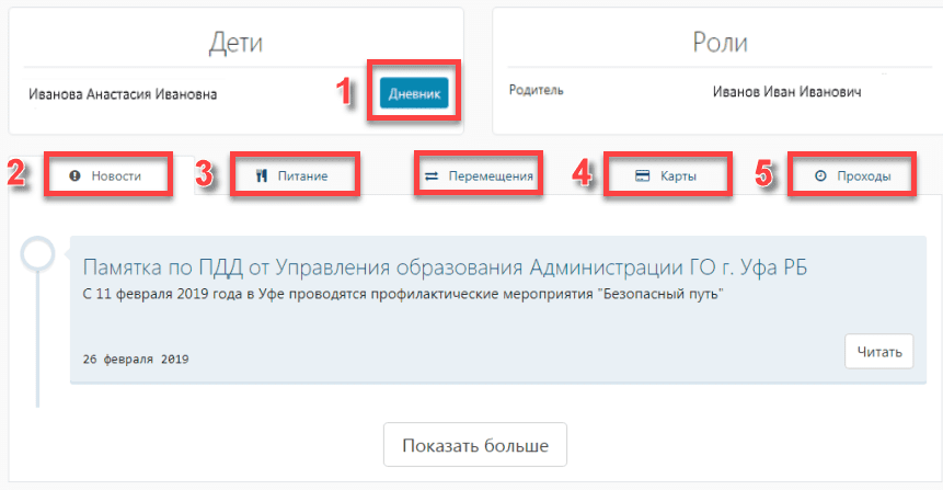 Вход для родителей на сайт элскул.ру открывает доступ к следующим вкладкам.