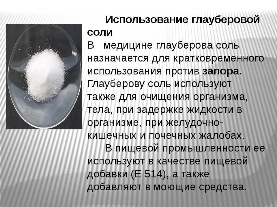 Существуют различные способы применения глауберовой соли, и мы рассмотрим их более подробно: