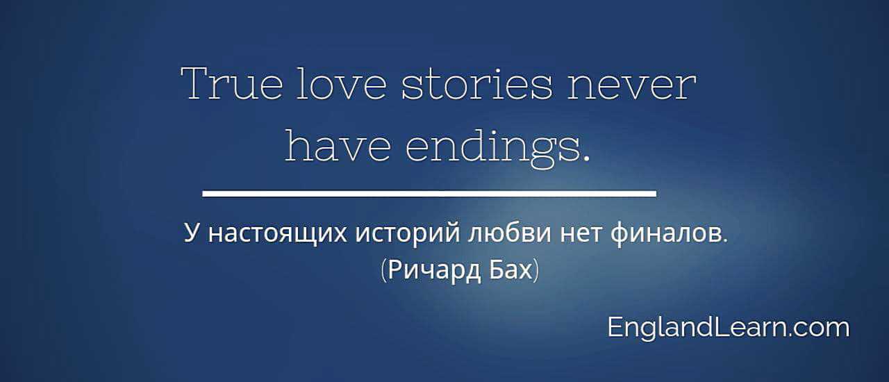 - “True love stories never have endings.” — «У настоящих историй любви нет финалов». (Ричард Бах)