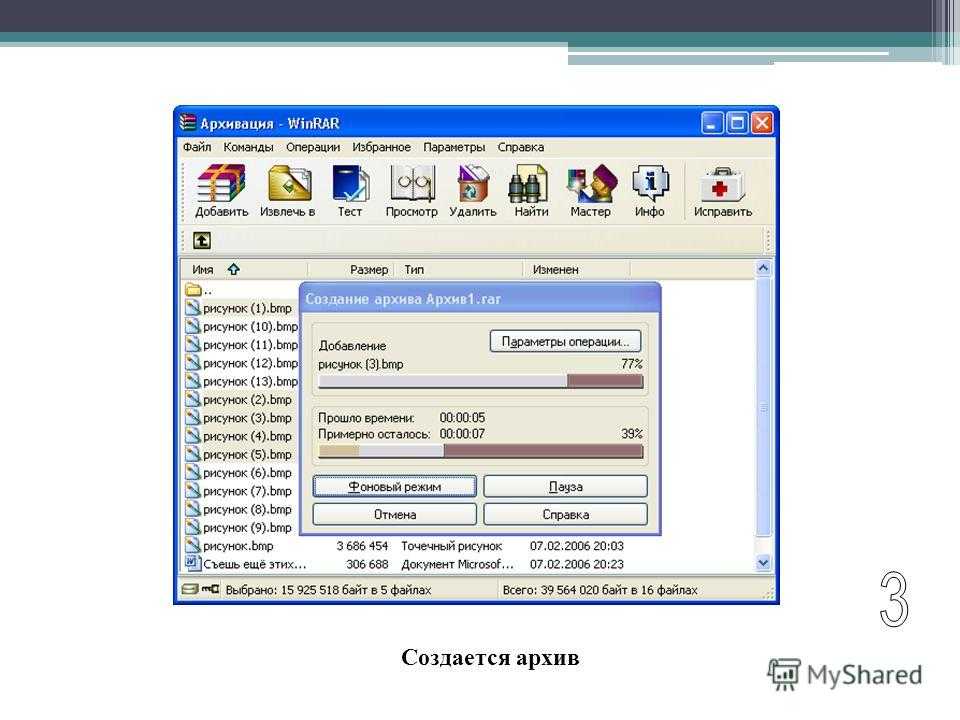 У вас будет возможность наблюдать за прогрессом архивации на своём экране.