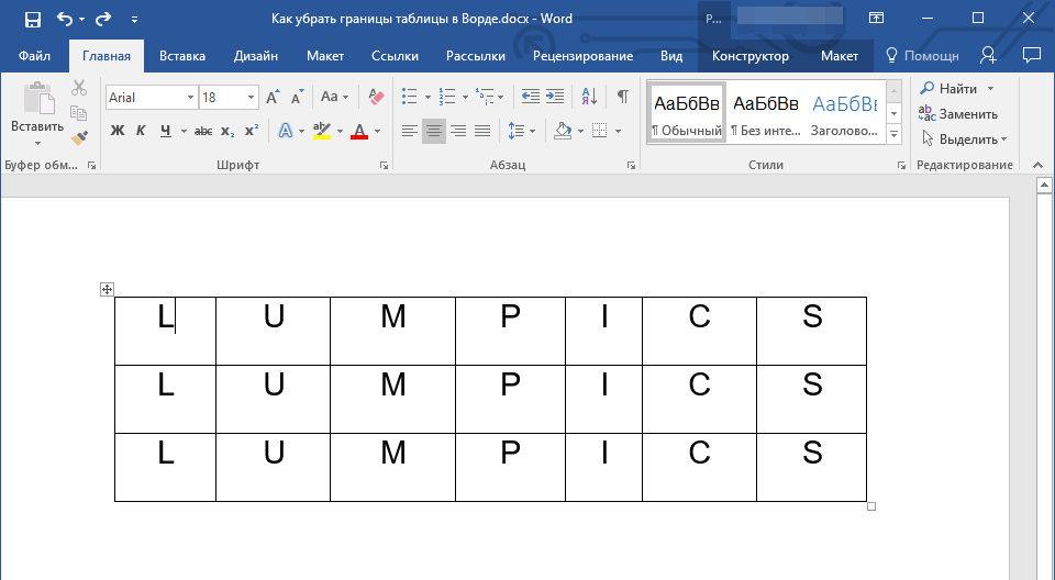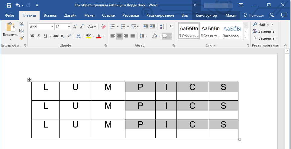 Наша с вами задача — скрыть, но не удалить границы таблицы, то есть, сделать их прозрачными, невидимыми, незаметными при печати, оставив при этом все содержимое ячеек, как и сами ячейки, на своих местах.