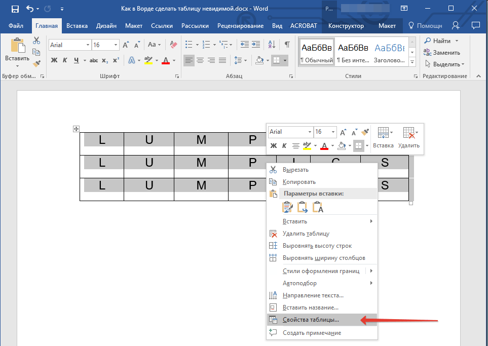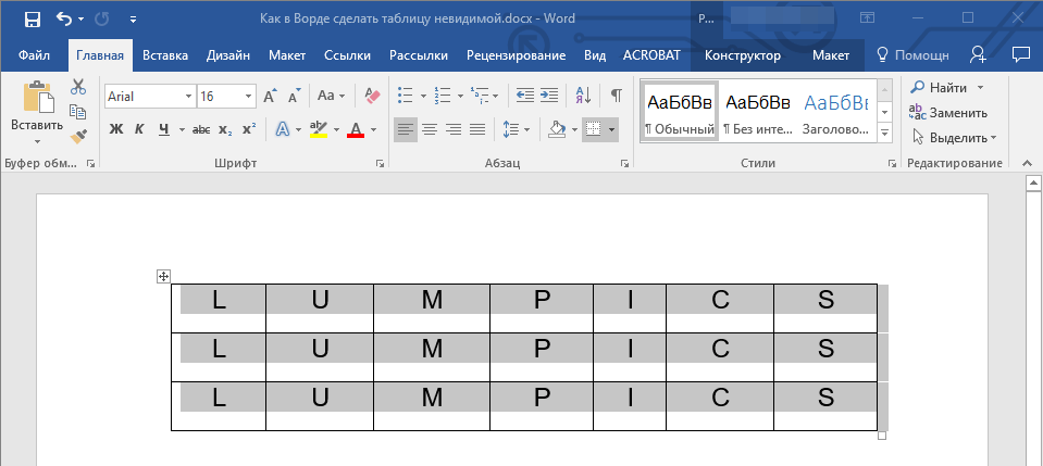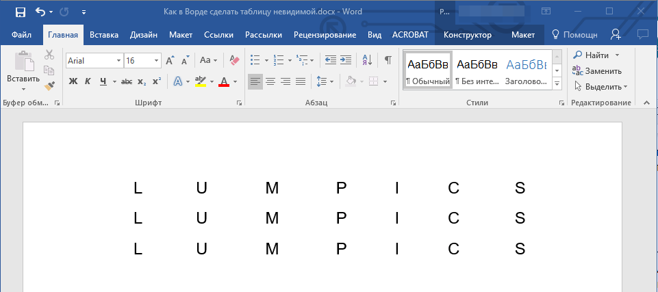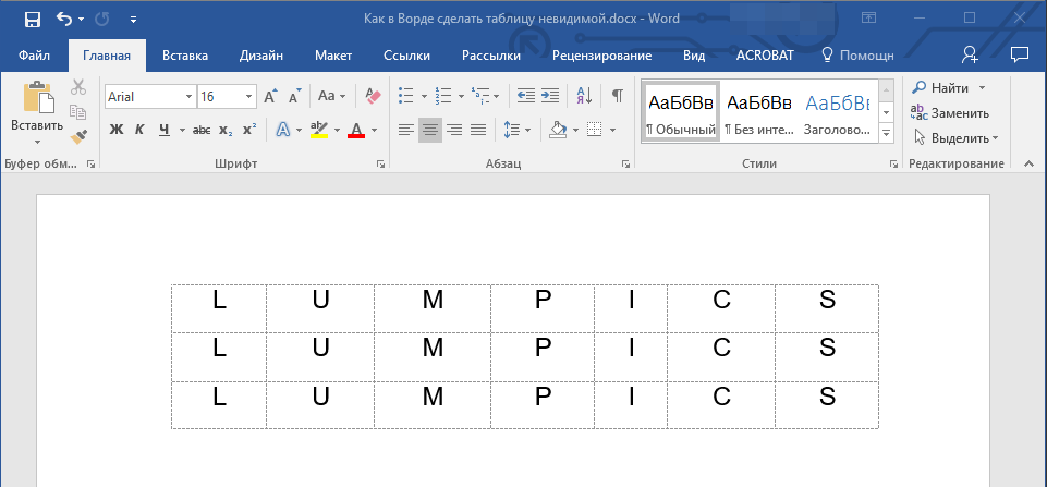 Сделав это, мы можем смело переходить к описанию того, как сделать невидимую таблицу в Ворде.
