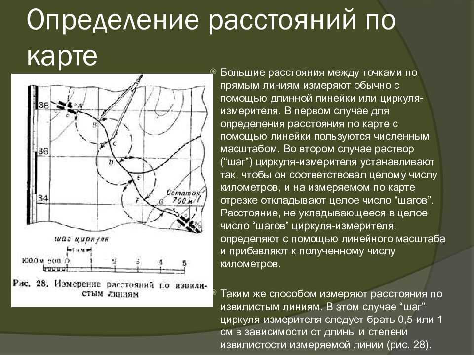 - Определение масштаба. Масштаб карты позволяет определить реальное расстояние между объектами на карте.