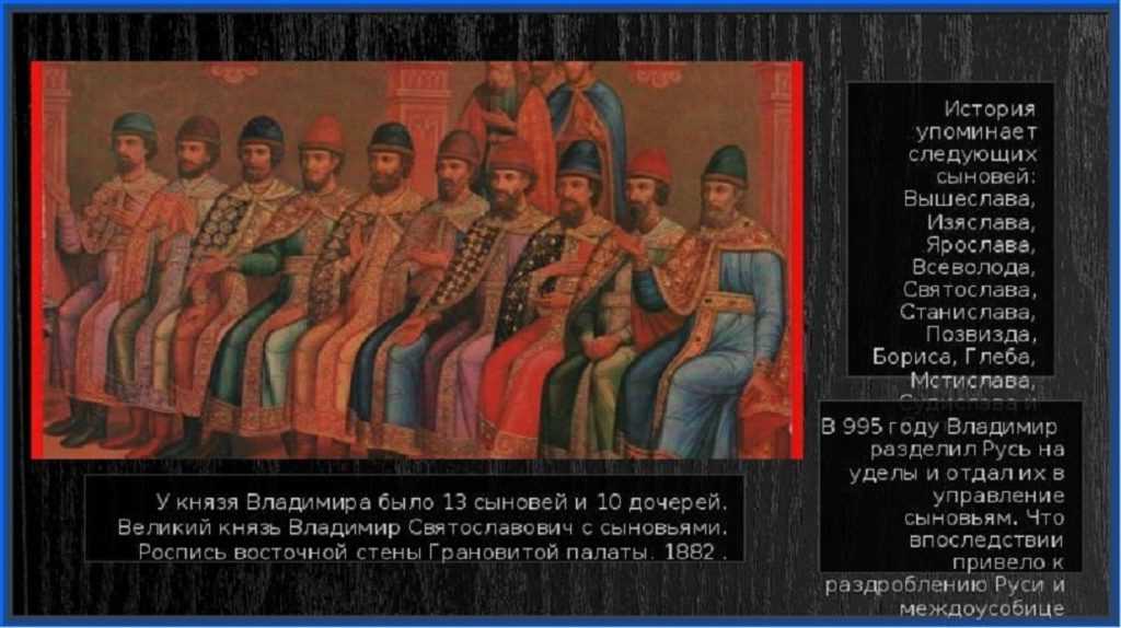 Для князей того времени, как и для многих людей сейчас, важно было не только оставить после себя какое-то наследие, но и передать власть в надежные руки. Удалось ли это сделать князю Владимиру?