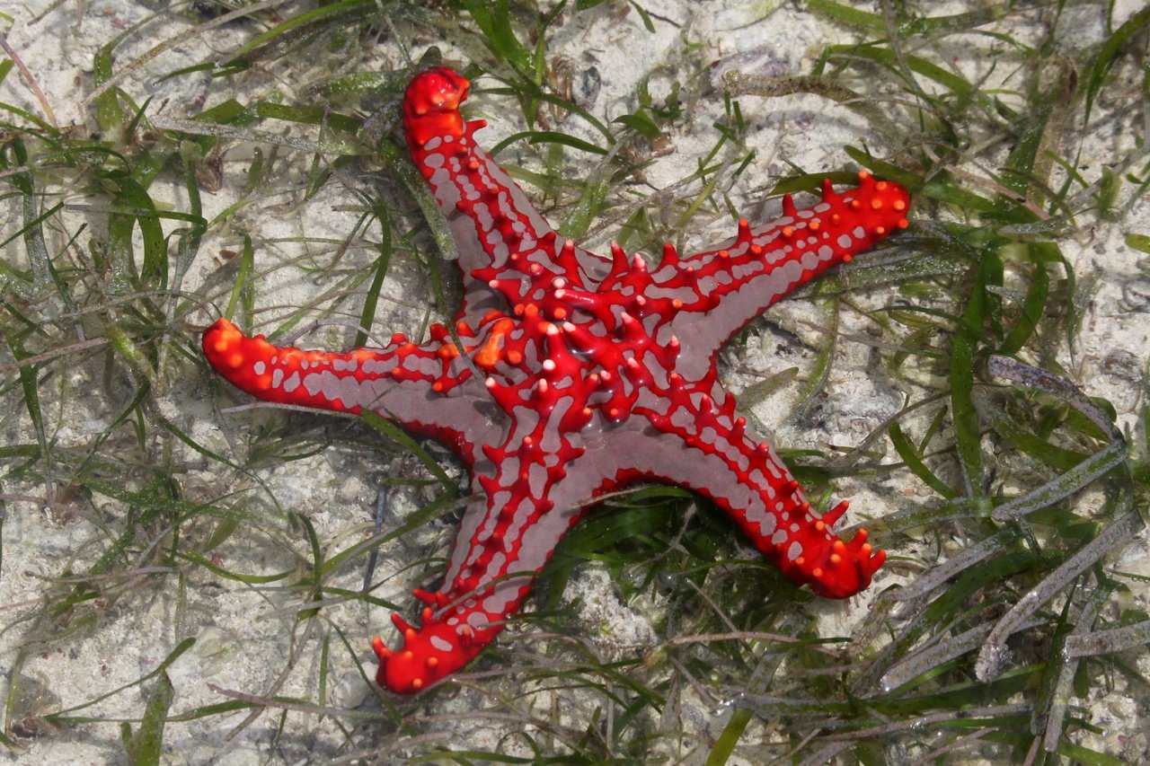 Ярким представителем иглокожих является морская звезда. Чаще у нее 5 лучей, но бывает 3 или 6. Также их отличает яркая окраска. Живут звезды до 20 лет, питаются рыбами, крабами. Морские звезды поедают промысловых моллюсков, а также кораллы, тем самым приносят ущерб.