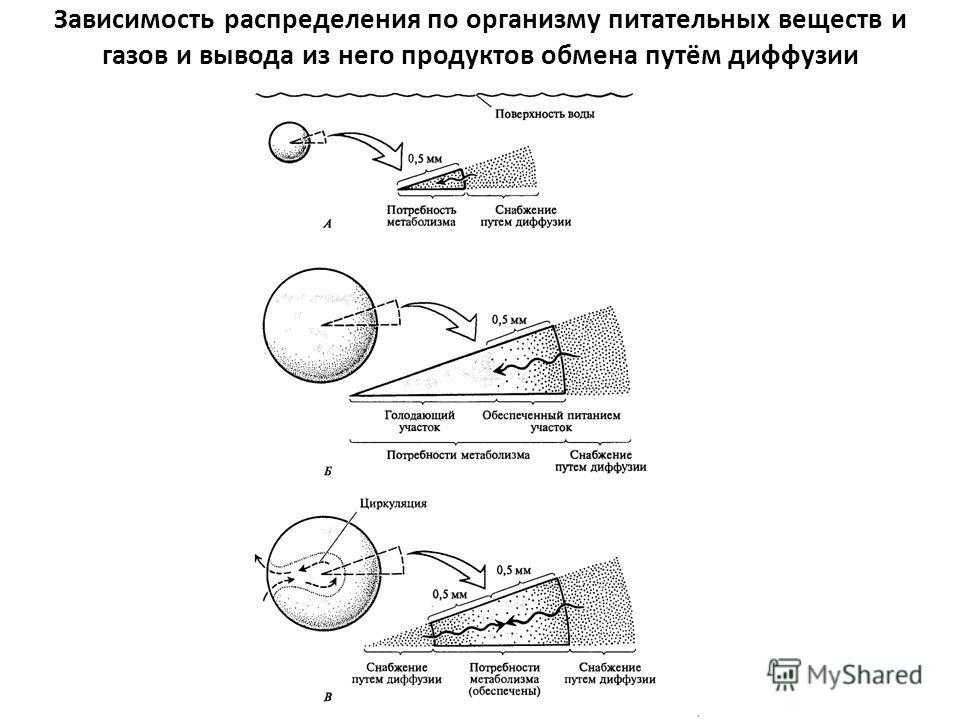 Зависимость распределения по организму питательных веществ и газов и вывода из него продуктов обмена путём диффузии