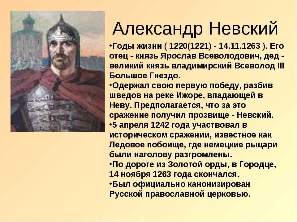 Имя Александра Невского он получил от сражения при слиянии Ижоры и Невы со шведами, которые хотели взять Новгород.
