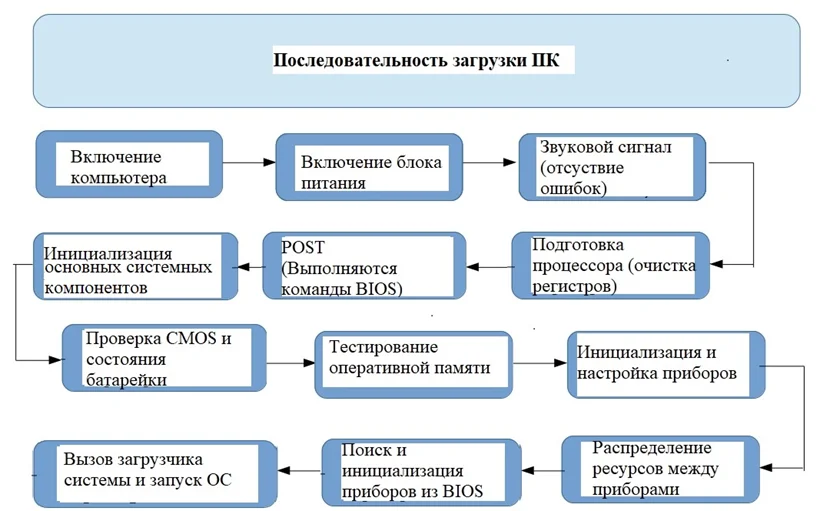 - Инициализацию установленного железа и считывание его настроек при включении компьютера.