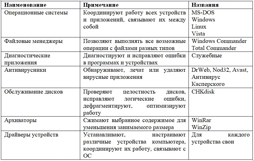 Программное обеспечение, установленное на ПК, делится на 3 разновидности: