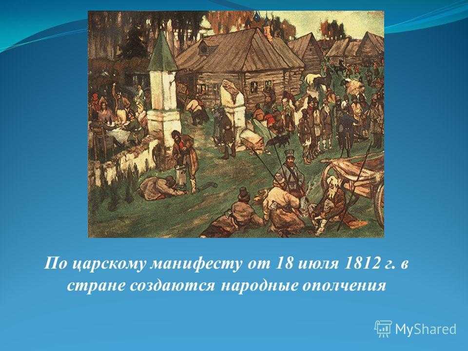 По царскому манифесту от 18 июля 1812 г. в стране создаются народные ополчения