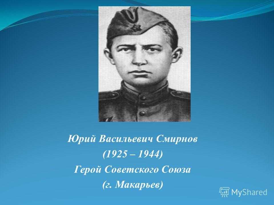 Юрий Васильевич Смирнов (1925 – 1944) Герой Советского Союза (г. Макарьев)
