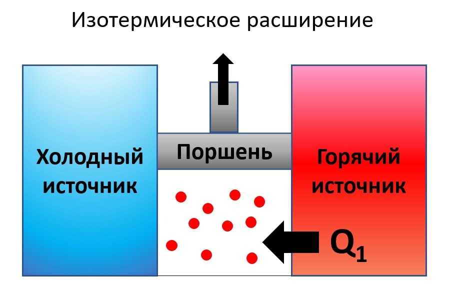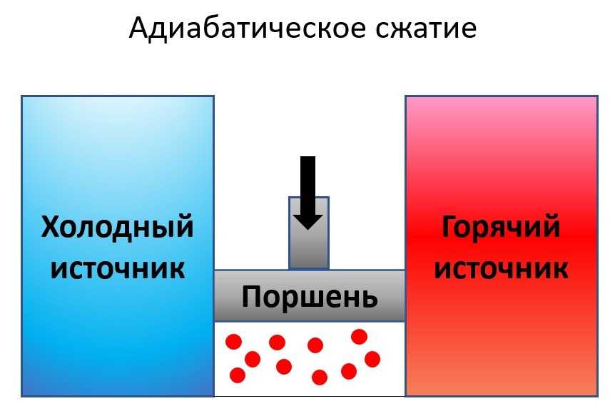 Чтобы понять, как работает цикл Карно, нужно представить простой тепловой двигатель, например цилиндр с поршнем, внутри которого находится газ. К газу может подводиться и отводится тепло. Источники тепла, при этом, называются: