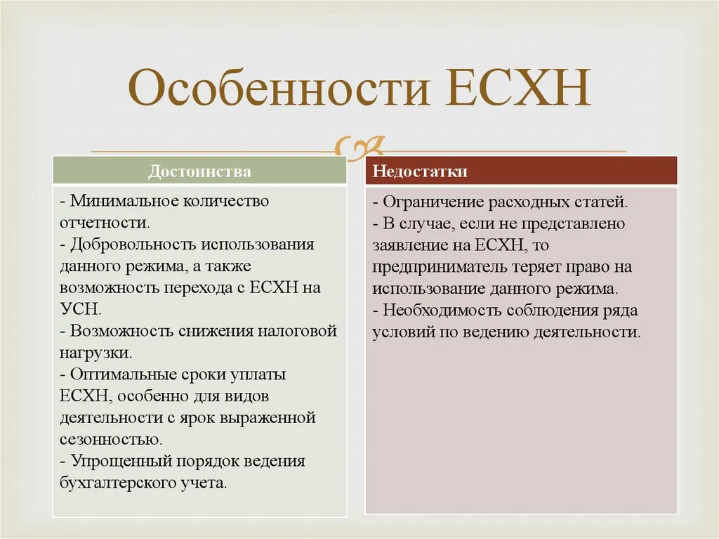 Основное условие для перехода на ЕСХН – доход от сельского хозяйства более 70%. При ЕСХН налоговая ставка — 6%. Иногда региональные власти сокращают ее до 0%. Перечисление в бюджет осуществляется два раза в год.