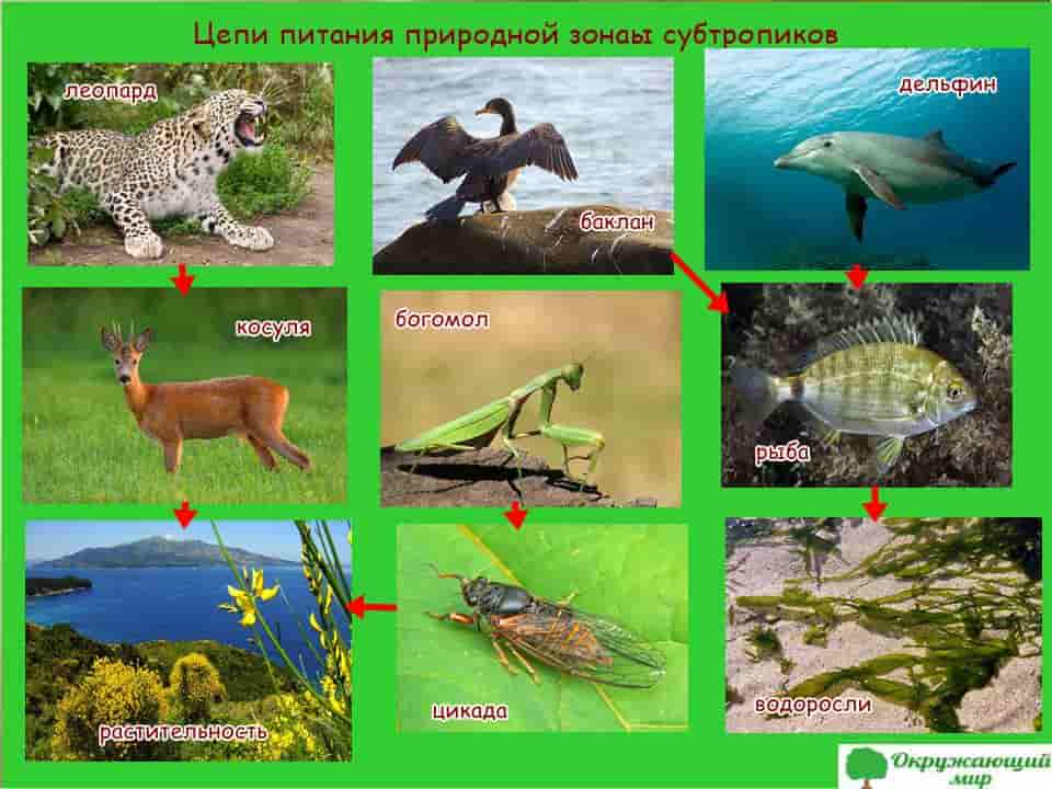 Пример экологических связей в природе Черноморского побережья Кавказа для 4 класса