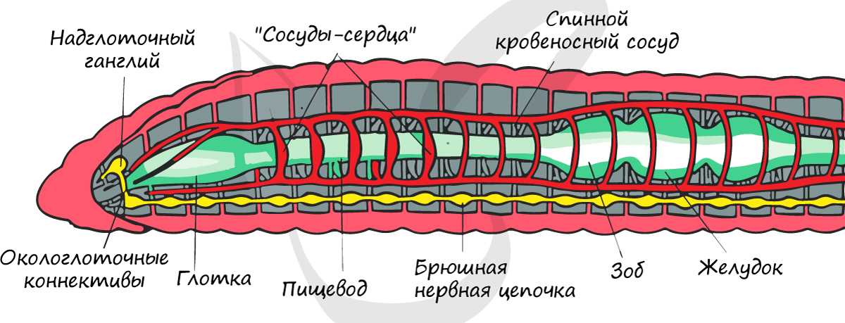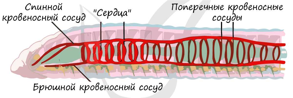 У кольчатых червей впервые возникает кровеносная система! Этот эволюционный момент очень важен. Кровеносная система кольчецов замкнутая, настоящее сердце отсутствует, кровь движется по сосудам за счет пульсации их стенок.
