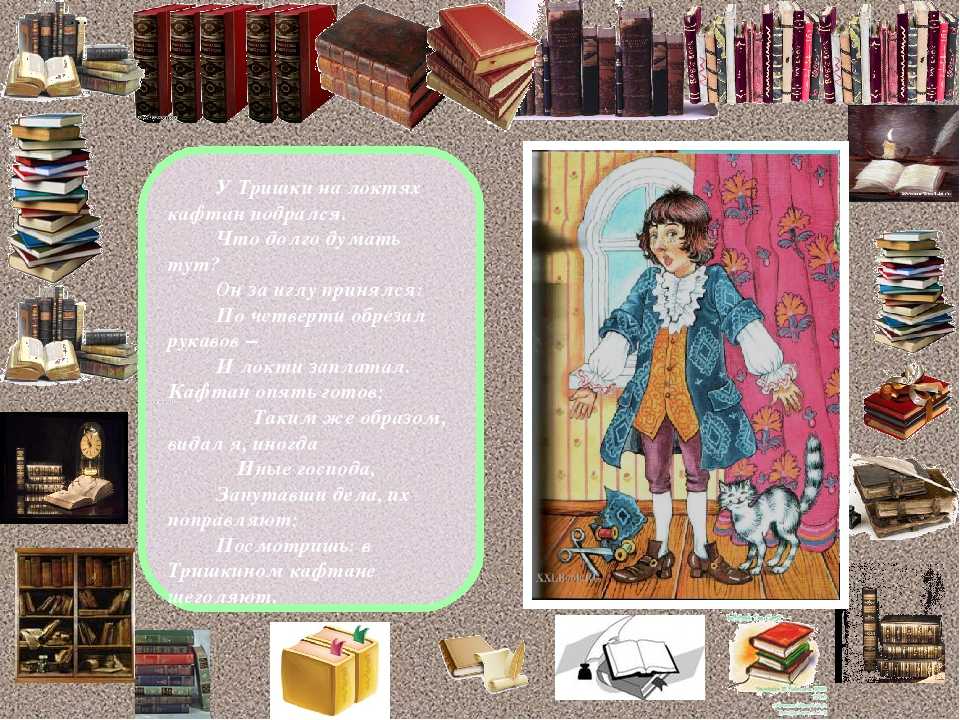 У Тришки на локтях кафтан подрался. Что долго думать тут? Он за иглу принялся: По четверти обрезал рукавов – И локти заплатал. Кафтан опять готов; Таким же образом, видал я, иногда Иные господа, Запутавши дела, их поправляют; Посмотришь: в Тришкином кафтане щеголяют. …