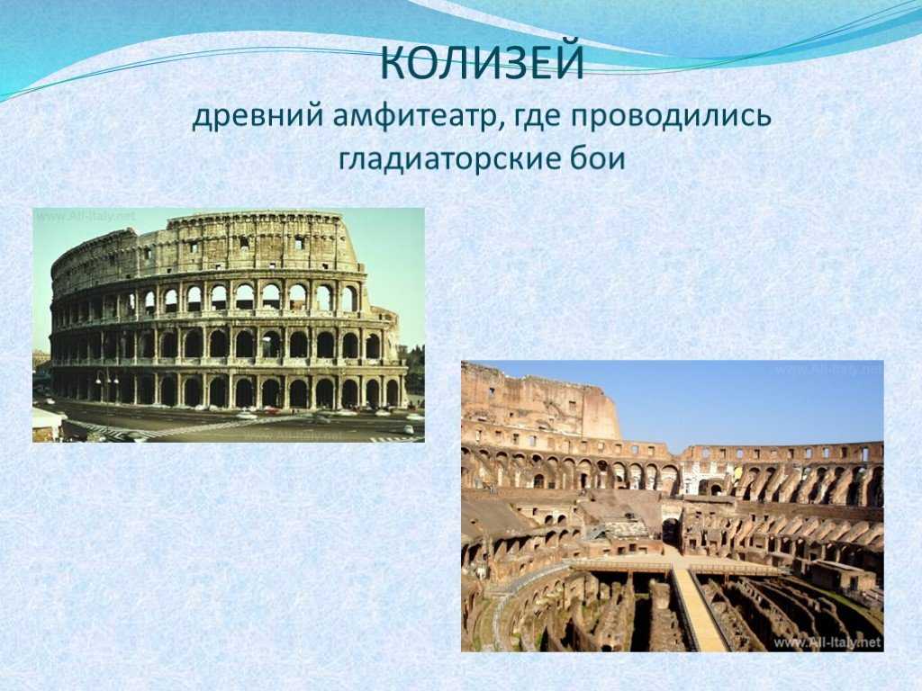 Надеемся, что Вам помог доклад о Колизее в подготовке к занятиям, и Вы узнали много полезного об этой стране. А свое сообщение про Колизей Вы можете оставить через форму комментариев.