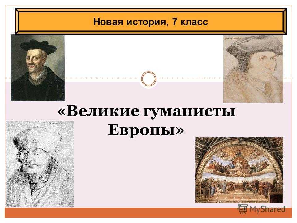 Презентация на тему: » «Великие гуманисты Европы» Новая история, 7 класс.» — Транскрипт: