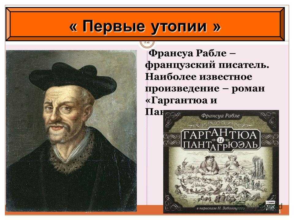 Антоненкова Анжелика МОУ Будинская ООШ 12 Франсуа Рабле – французский писатель. Наиболее известное произведение – роман «Гаргантюа и Пантагрюэль». « Первые утопии »