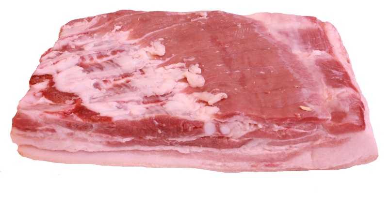- Грудинка — толстая часть брюшины. Она расположена ближе к пояснице. Много жира. Ее коптят и жарят.
