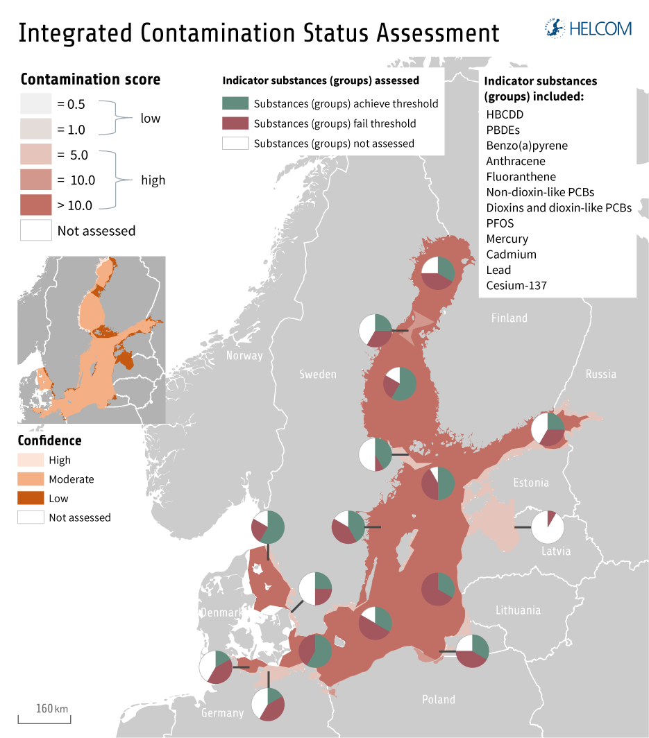 Карта загрязнения Балтийского моря опасными веществами  HELCOM