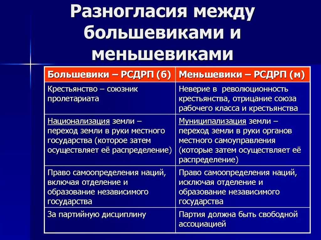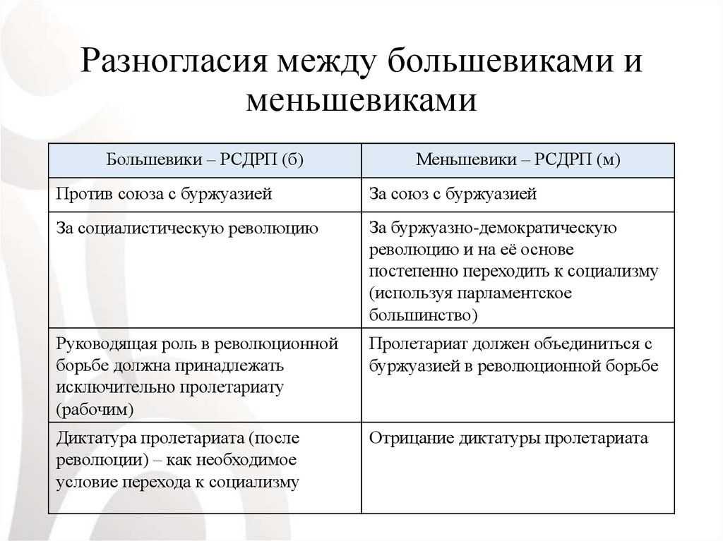 Различия взглядов большевиков и меньшевиков