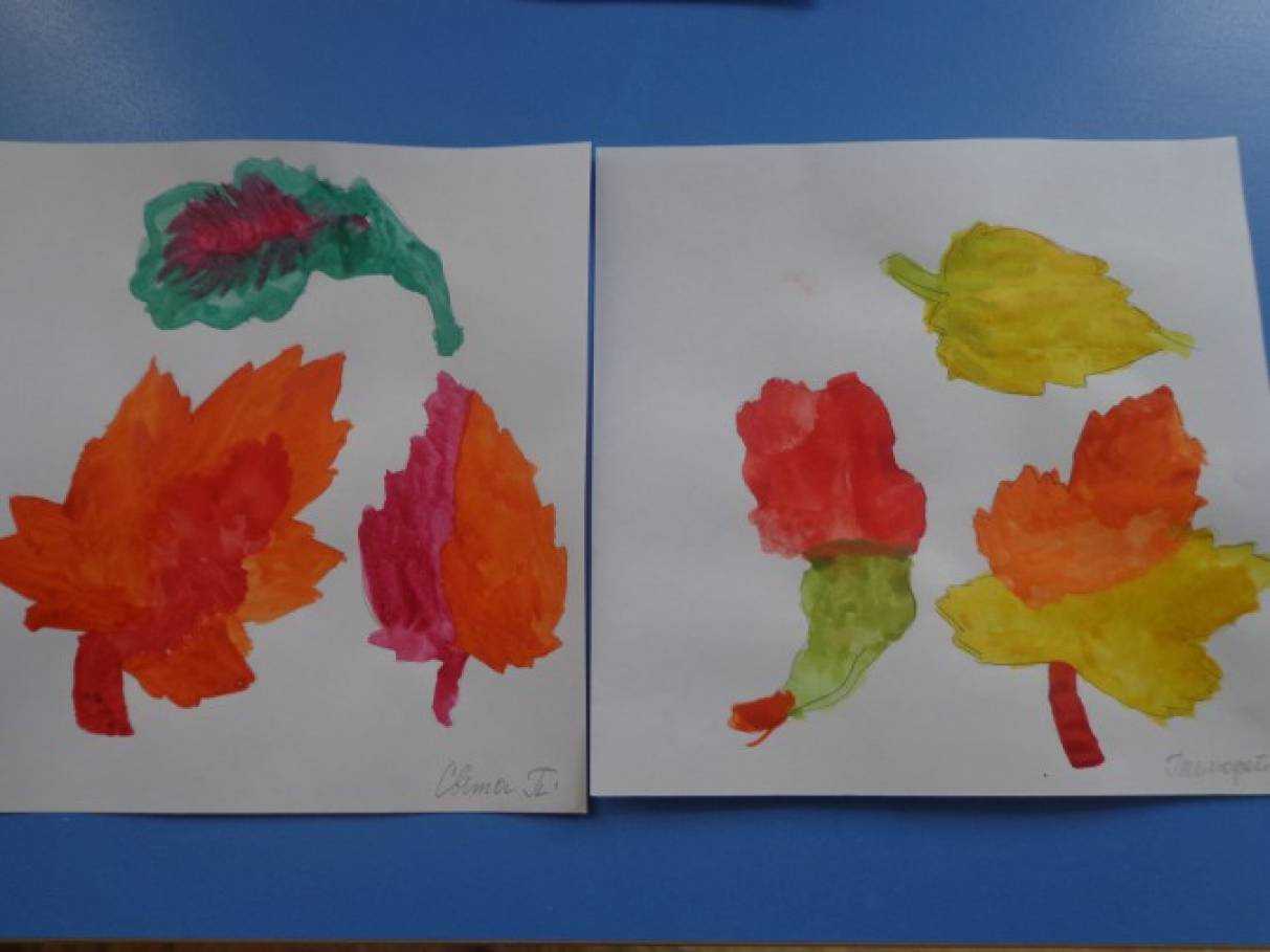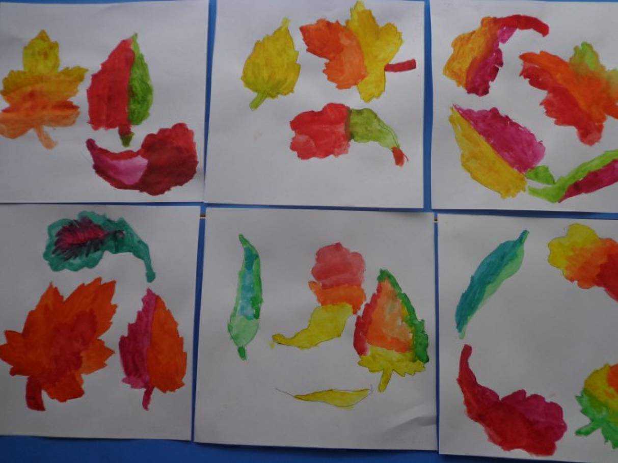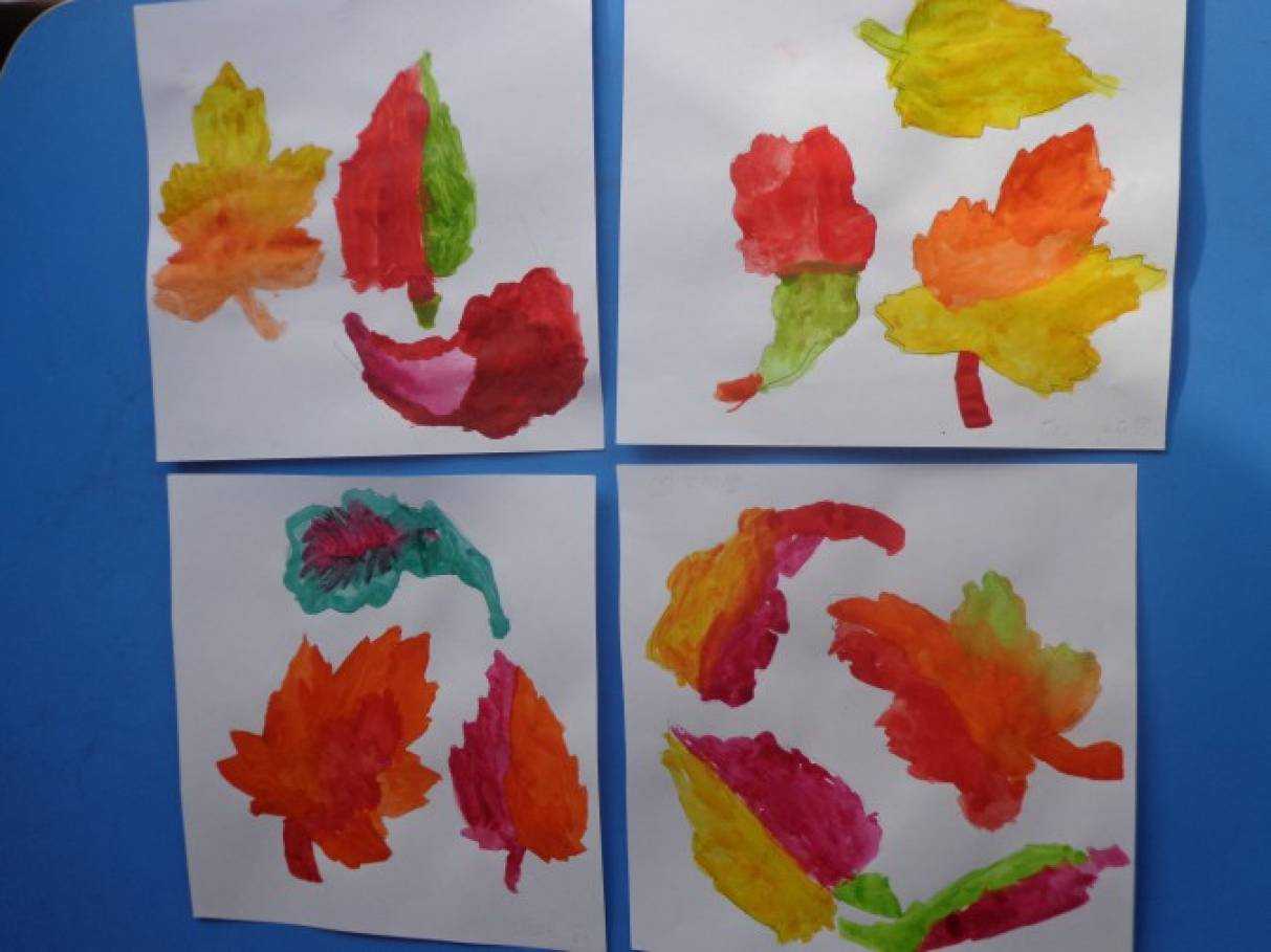 Воспитатель: Какие красивые получились листочки. Давайте их рассмотрим и отметим лучшие. (Дети оценивают работы друг друга за аккуратность, за интересное цветовое решение)