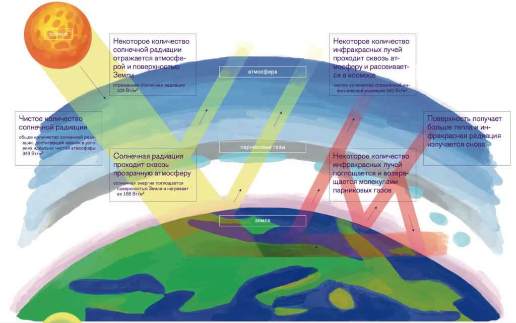 атмосфере Земли задерживают тепло Солнца. Этот процесс делает Землю