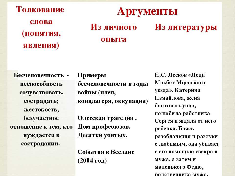 Аргументы к разделу «Духовно-нравственные ориентиры в жизни человека»
