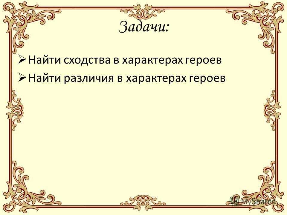 Задачи: Найти сходства в характерах героев Найти различия в характерах героев