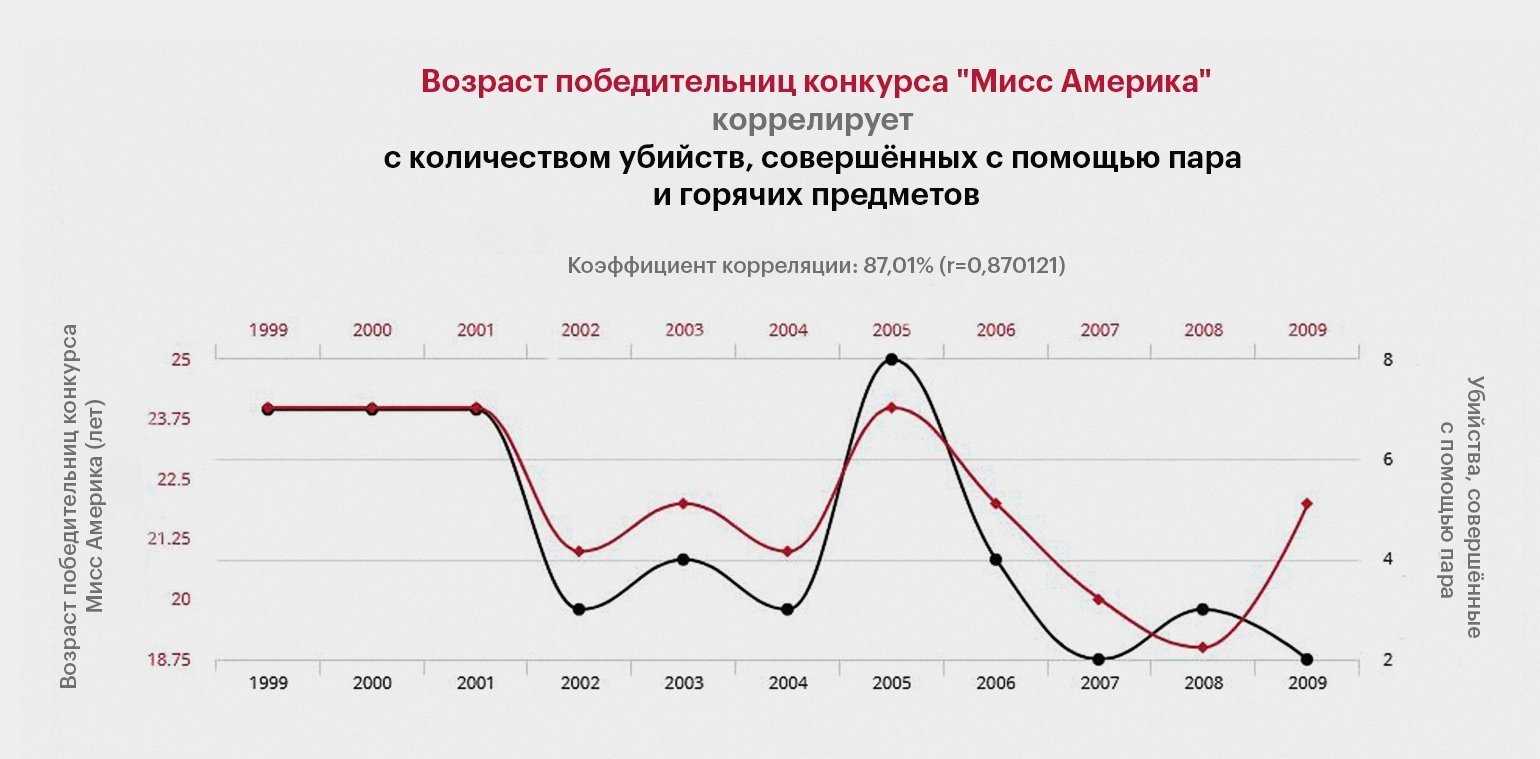 Когда изменения одной величины сопутствуют изменениям другой, говорят о корреляции. Главное, что необходимо о ней знать: корреляция не означает причинно-следственную связь.