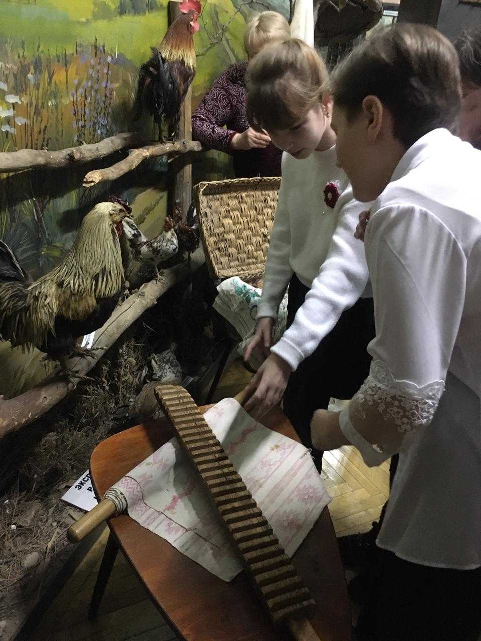 Сотрудник музея показал старинные предметы быта. А девочки окунулись в старину и попробовали себя в роли хозяек. Они гладили белье рубелем.