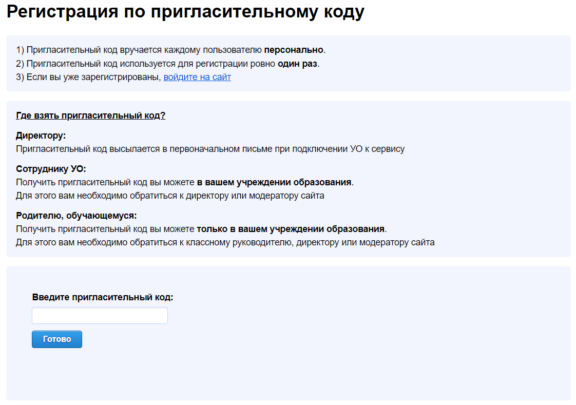 - Свяжитесь с классным руководителем, модераторами сайта или директором учреждения образования и попросите выдать новый пригласительный код.