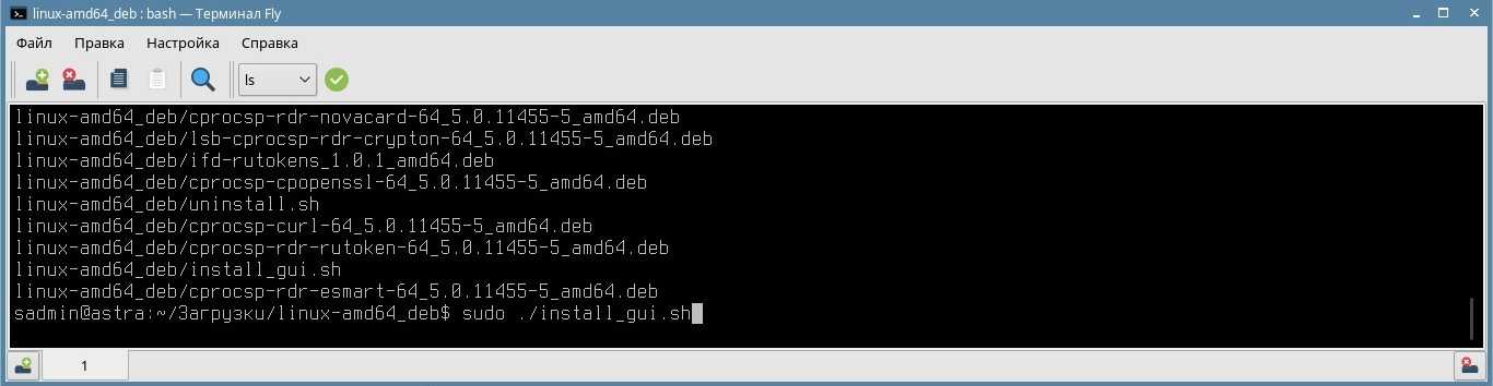 1.3. Перейдите в папку со скачанным файлом «linux-amd64_deb.tgz». Нажмите «Сервис», «Открыть терминал»;