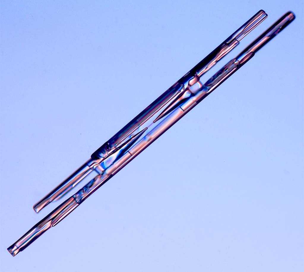 Дендриты. Имеют ярко выраженные разветвляющиеся лучи. Эти крупные кристаллы можно рассмотреть невооружённым глазом.