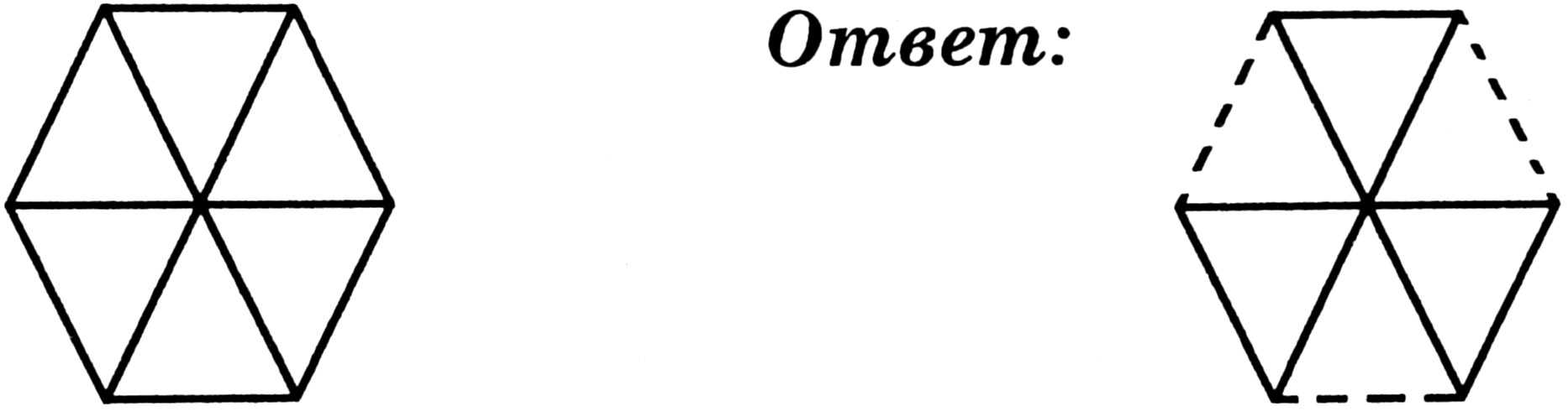 Уберите три палочки так, чтобы осталось 3 равносторонних треугольника.