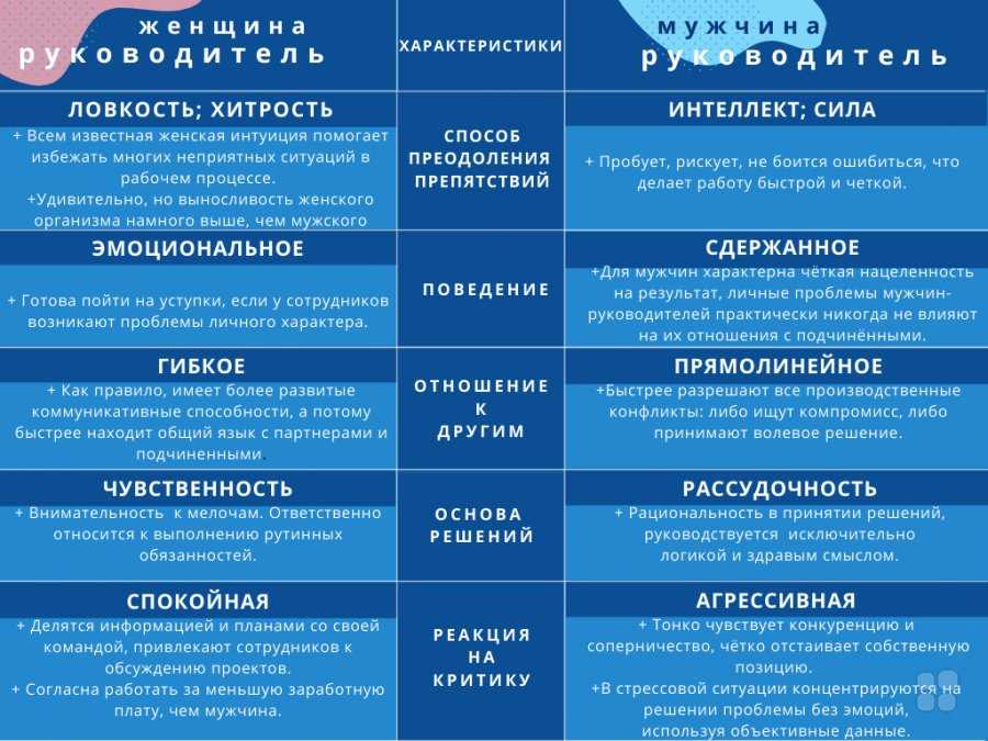 Мужчины отличаются эмоциональной устойчивостью, лидерством, прямолинейностью, объективностью, сфокусированным вниманием