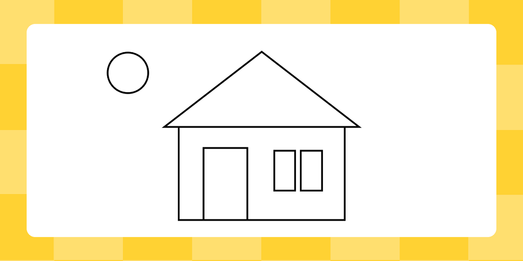 Ребёнку нужно найти и назвать все геометрические фигуры на картинке, а затем раскрасить их.