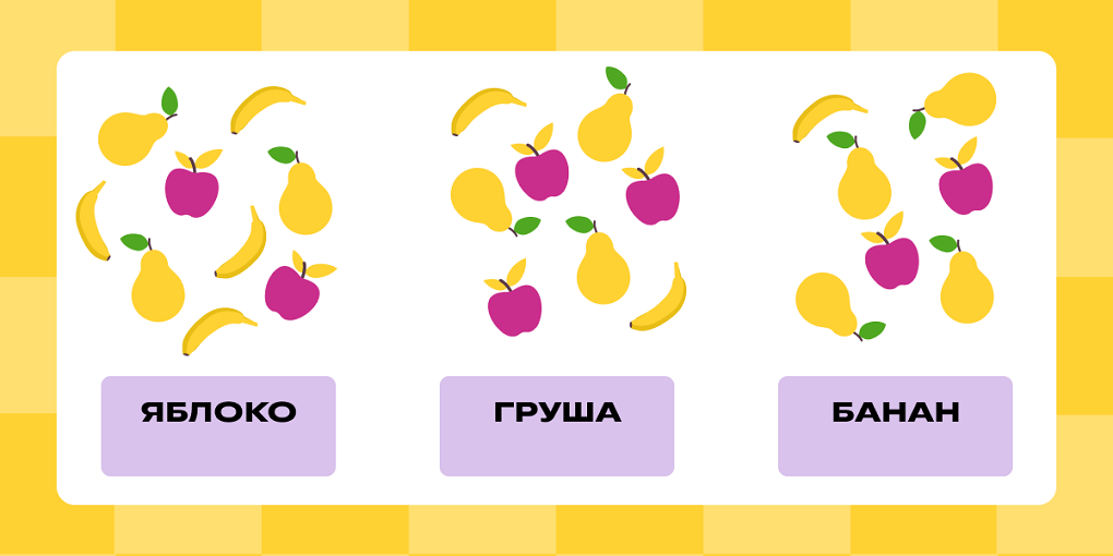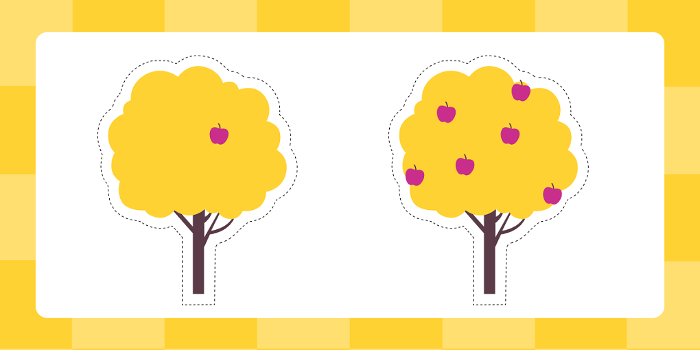 Ребёнку нужно рисовать или распределять предметы, например яблоки на деревьях. На одном дереве должно быть одно яблоко, на другом — много.