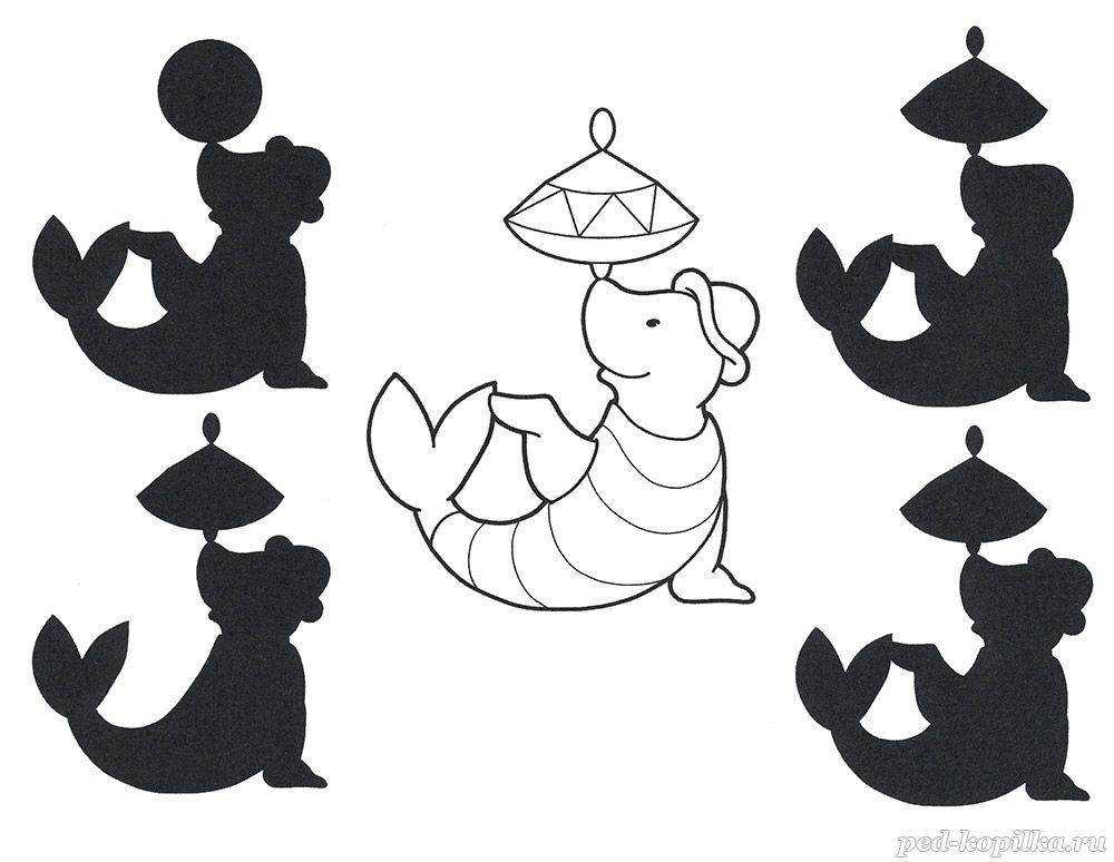 №15. Посмотри внимательно на картинку, раскрась её. Найти правильную тень тюленя.