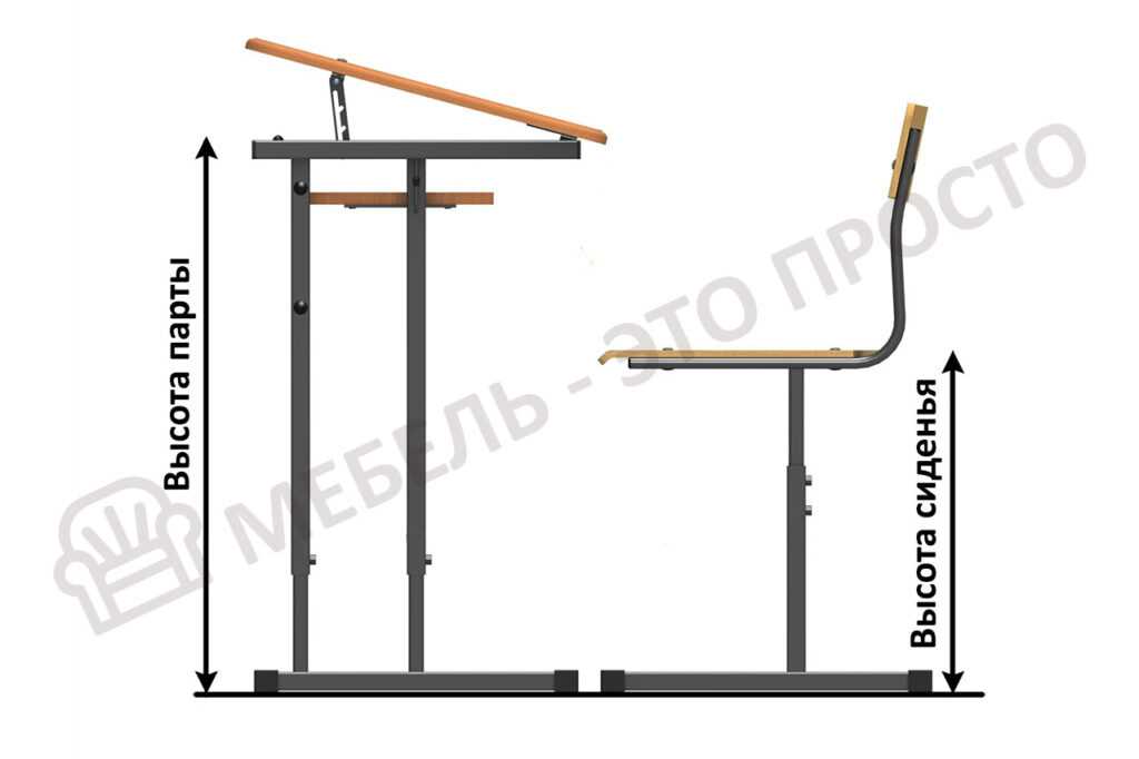 Конструкция школьной парты должна соответствовать принятым стандартам — учитывать высоту сиденья и столешницы, угол наклона крышки, промежуток между краем стола и спинкой. Эти характеристики пропорционально соответствуют и зависят от роста ученика.