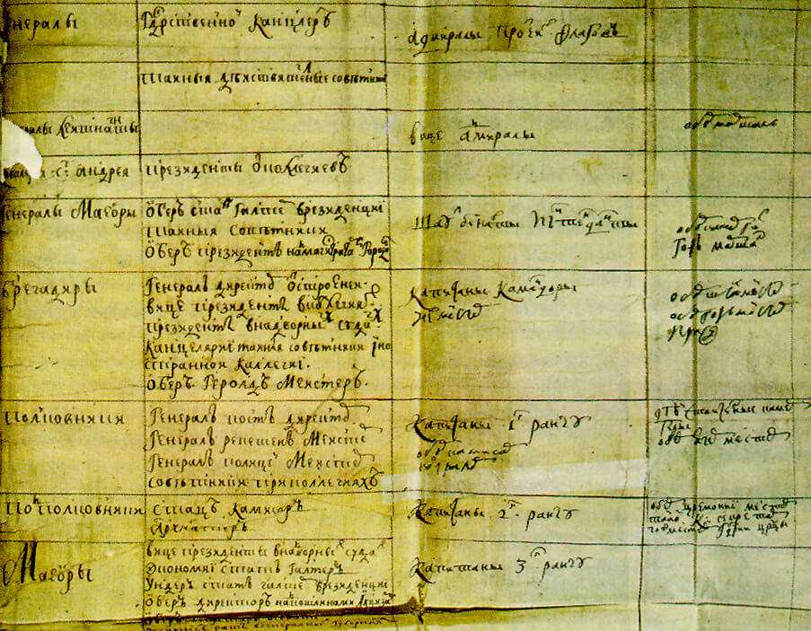С Табелью о рангах в полном виде, а также с правилами, «каким образом с оными рангами каждому поступать надлежит», можно познакомиться здесь.