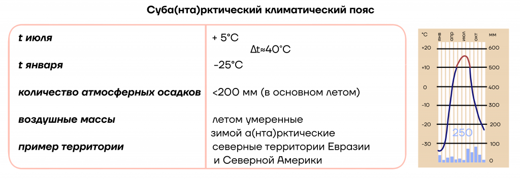 Субарктический/ субантарктический климатические пояса являются переходными. Находятся между умеренным и а(нта)рктическим климатическими поясами. Значит: