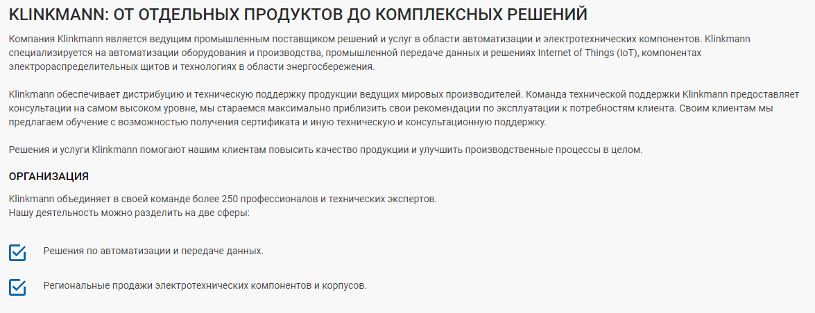Текст о компании должен быть емким, содержать описания конкурентных преимуществ и их доказательства
