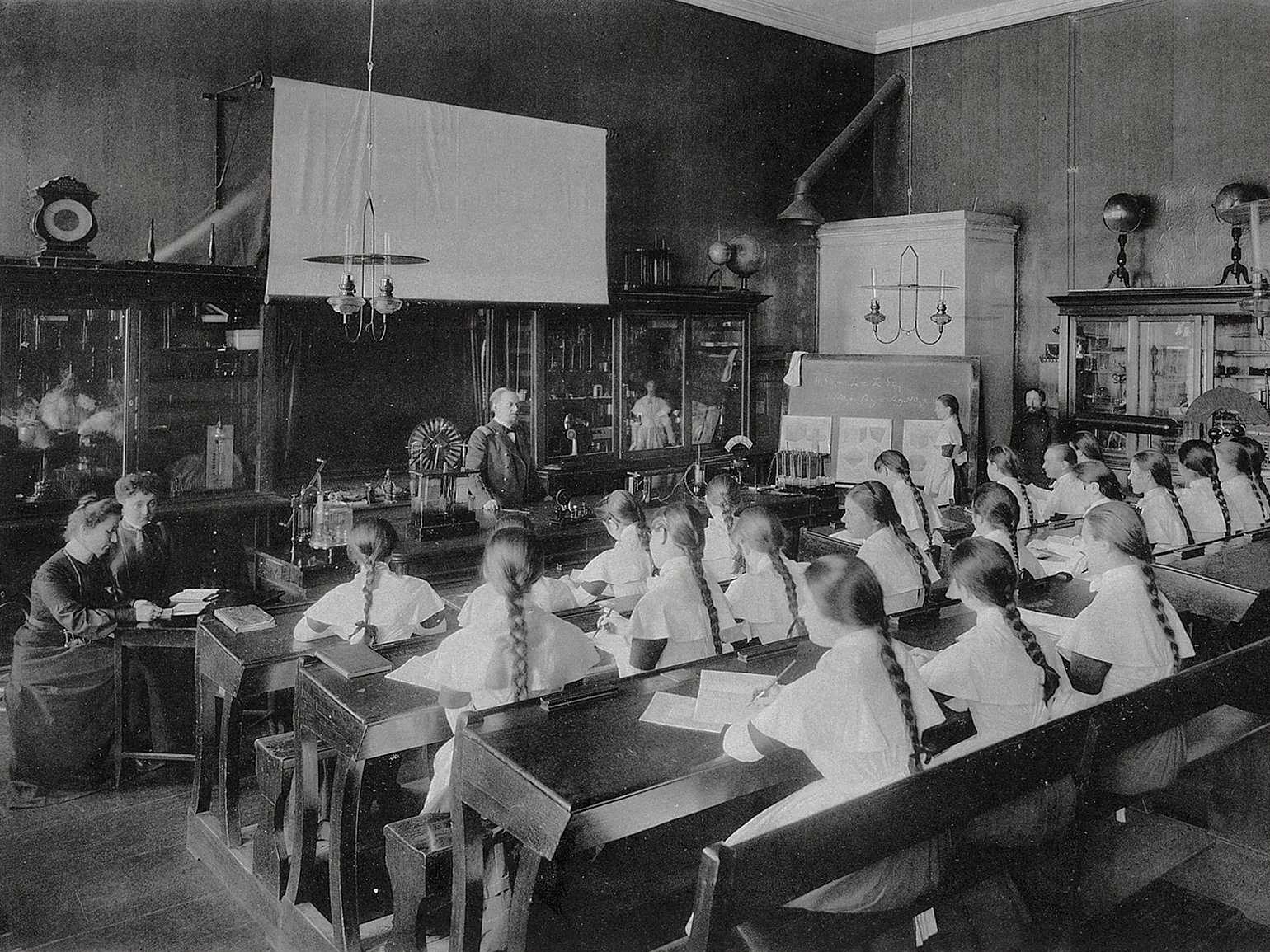 Урок физики, Смольный институт, 1905 годФото: «Императорское воспитательное общество благородных девиц в Смольном в Петербурге» / Товарищество Р. Голике и А. Вильборг / РНБ / НЭБ